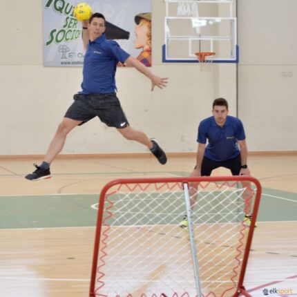 Alvo de Tchoukball galvanizado, concebido para treinos e competição. A sua estrutura em aço com tubo redondo de 32 x 1,5 mm, com tratamento galvanizado, oferece máxima resistência e proteção contra a corrosão. A rede de ressalto em nylon de 4 mm, com malha de 40 x 40 mm, fixada com corda elástica de 6 mm, garante um retorno ótimo da bola. Graças ao seu sistema de inclinação regulável com tubo telescópico e alavanca de fixação, podes ajustar o ângulo entre 50° e 60°, adaptando a dificuldade do jogo. Além disso, conta com 4 apoios de borracha antiderrapante que proporcionam estabilidade em qualquer superfície. Ideal para escolas e clubes desportivos. Melhora a tua técnica com o melhor alvo de Tchoukball!