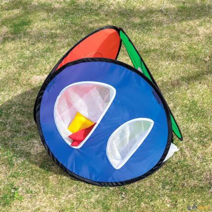 Cada uma das suas quatro faces permite um jogo e um desafio diferente. O alvo pop-up 4 em 1 para jogar golf, e lançar pequenos objetos como saquitos, bolas ou bolas de golf. Fabricado em fibra de vidro, tecido de poliéster e rede de poliéster. Uma vez desdobrado, aparecem 4 alvos com 4 objetivos diferentes em cada lado Perfeito para trabalhar as diferentes capacidades de precisão, de lançamento e para ajudar os jogadores de golf a melhorar. Design pop up, o que significa que se desdobra e dobra em segundos. Adequado para utilização no interior e no exterior. Inclui espias para fixação ao solo e um saco para arrumação e transporte.