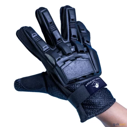 Luva muito respirável, não absorve a humidade. Palma de couro antiderrapante para maior aderência e conforto. O dorso é feito de malha e uma peça de plástico flexível e protetora. Com elástico ao redor dos dedos e da palma da mão para facilitar o movimento. Ajuste de pulso com elástico e banda de velcro.