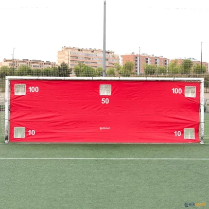 Tela de treino para colocação nas balizas de futebol a 7 ou 11. Ideal para treino especifico de marcação de livres e remates à baliza. Com um sistema de ajuste rápido aos postes da baliza. Existe uma rede por trás de cada orifício (4 esquinas e 1 central) para recolher facilmente as bolas.
