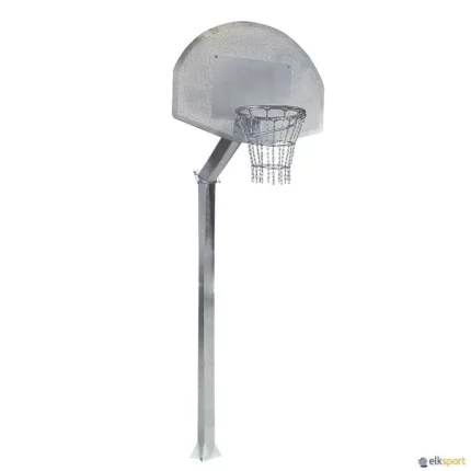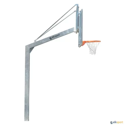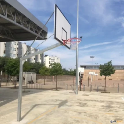 Fabricada conforme a Norma Europeia UNE-EN 1270.  Tabela fixa de Basquetebol, em tubo de ferro de 10 x 10 cm com base de chapa fixada ao solo por meio de haste em rosca unida entre si para colocar em maciço de betão. Tirantes telescópicos para uma melhor regulação do tabuleiro, são muito sólidos e resistentes. Com quadro de ferro (5 x 2,5 x 0,2 cm) por trás do tabuleiro para um maior reforço do tabuleiro e do aro. Todas as partes metálicas estão submetidas a um tratamento galvanizado anticorrosivo, para evitar a oxidação. Avanço do tabuleiro a 1,65 m. Aro e rede incluídos. Opções do tabuleiro : - em fibra de 20 mm - em metacrílato de 10 mm. Também disponíveis com avanço de somente 1 m.