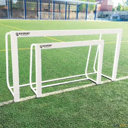 Mini baliza de treino, metálica, dobrável, com ganchos para colocação da rede.