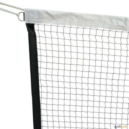 Rede de badminton de competição Linha Ouro, fabricada em poliamida de alta tenacidade (PAHT). Com fita de poliéster branca na parte superior e preta na parte inferior e laterais. Inclui varetas laterais em fibra de vidro. Dimensões: 6,20 x 0,76 m.