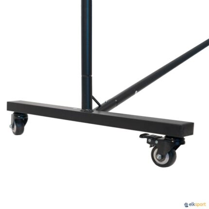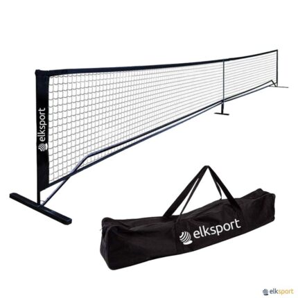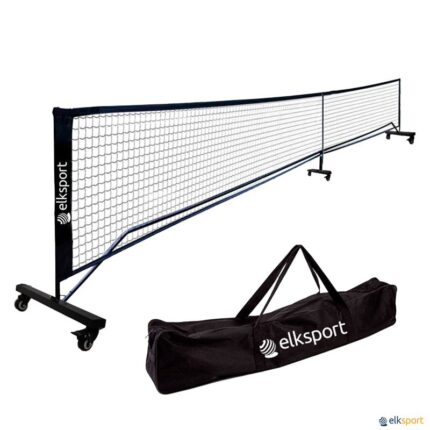 Rede com estrutura em aço com um tratamento antiferrugem com tinta epóxi a quente na cor preta. A rede incorpora 6 rodas, 3 das quais com travão, que permitem movê-la de forma rápida e cómoda. Se monta e desmonta em poucos minutos e se armazena num saco próprio feito de tecido Oxford 600D. Dimensões de acordo com os regulamentos da Federação Internacional de Pickleball. Para manter a altura da rede, esta estrutura tem uma haste de suporte em fibra de vidro para colocar no centro da rede.