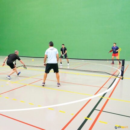 Rede com estrutura em aço com um tratamento antiferrugem com tinta epóxi a quente na cor preta. Se monta e desmonta em poucos minutos e se armazena num saco próprio feito de tecido Oxford 600D. Dimensões de acordo com os regulamentos da Federação Internacional de Pickleball. Para manter a altura da rede, esta estrutura tem uma haste de suporte em fibra de vidro para colocar no centro da rede.