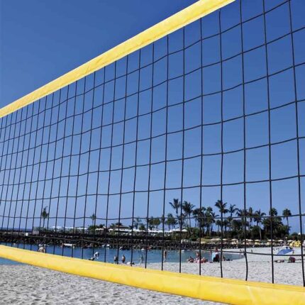 As nossas redes de ténis de praia são fabricadas em polipropileno e incluem uma fita na parte superior ou em todo o perímetro da rede.