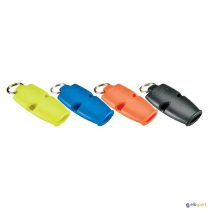 Seguro e higiénico, é o apito mais eficiente, fabricado para aumentar o “efeito de explosão” do som. Inclui cordão. Com sistema de fixação na boca amortecido CMG (Cushioned Mouth Grip). O bocal em termoplástico proporciona uma excelente aderência e proteção para os dentes. Disponível em 4 cores: preto / amarelo-preto / laranja-preto / preto-branco.