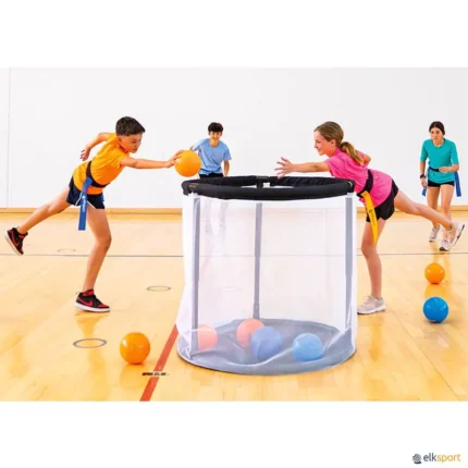 Para jogos ou concursos muito dinâmicos. Com seu diâmetro único e altura regulável, ajusta-se rapidamente através das suas pernas telescópicas, o que permite adaptá-lo a todas as idades e atividades. A sua grande abertura na parte superior, suporta bolas grandes e pequenas, bem como jogos com um grande número de participantes. Altamente durável, a estrutura é feita em tubos ABS leves, duráveis e fáceis de montar e desmontar para levar para qualquer lado, dentro do saco de transporte incluído. A malha transparente fixada por meio de velcros foi pensada para um uso intensivo. Caso prefira, pode ficar montada e armazenar todo o tipo de bolas.