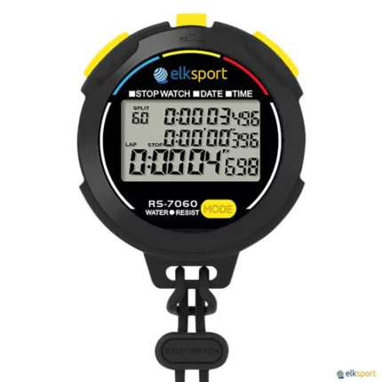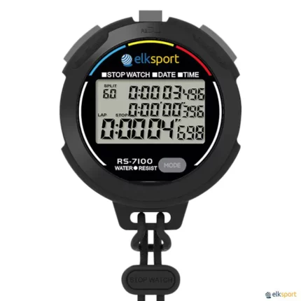 Cronómetro desportivo multifuncional com ecrã LCD e uma linha de grande visibilidade. Com pilha alcalina incluída. Precisão de 1/100 segundos.