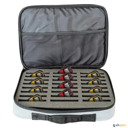 Mala com alvéolos para resguardar 10, 16 ou 24 cronómetros , de cor vermelha ou amarela.