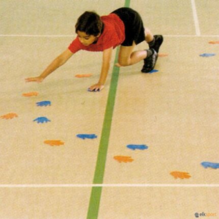 Jogo de mãos composto por: 10 pares, sendo as direitas de cor laranja e as esquerdas de cor azul. Sistema de apoio para orientar os conceitos de direções, movimentos e deslocações das diferentes partes do corpo, assim como para melhorar diversas capacidades básicas. A superfície posterior tem uma textura rugosa que permite manter cada componente no seu lugar.