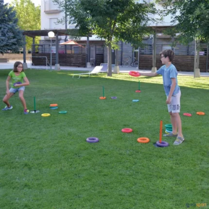 Uma atividade divertida, tanto para outdoor como indoor. Com umas bases e um bastão estável em borracha, o objetivo será tentar colocar os anéis nesse bastão e ver qual a equipa que consegue colocar mais. Caso queiram, há anéis que podem valer o dobro ou o triplo, depende da imaginação de cada um.