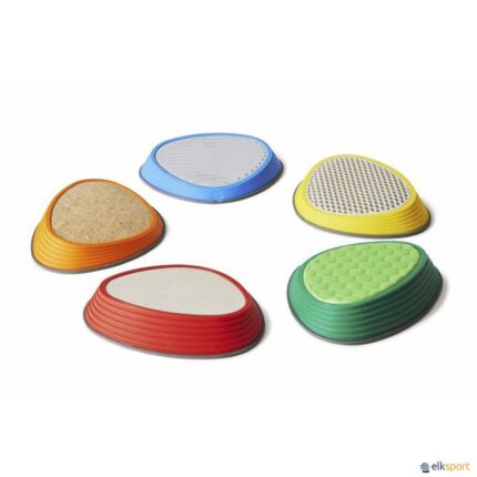 Material que desenvolve nas crianças o sentido tátil, tanto nas mãos como nos pés. Aprendem a expressar verbalmente suas impressões sensoriais. Dez discos em borracha muito agradável em 2 tamanhos. Um grande para colocar no solo e um pequeno para a mão. As possibilidades de jogo são inúmeras, desde a perceção básica das estruturas táteis, a jogos de relação com olhos vendados, jogos de memorização. Podem-se adaptar à idade e motricidade de cada aluno.