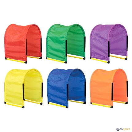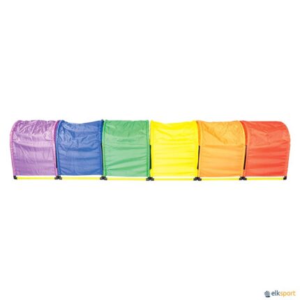 Separados ou juntos, os arcos de obstáculos adaptam-se a qualquer atividade. Estes túneis podem ser usados individualmente ou unidos através das laterais com fecho de velcro, formando um único túnel de 3,6 m. Podem também ser separados para formar dois túneis de 1,8 m, três túneis de 1,2 m ou seis túneis de 0,6 m, dependendo do jogo e do número de participantes. A largura de 56 cm permite atravessá-los facilmente, mesmo com plataformas deslizantes. As cores vivas facilitam a identificação das equipas, a criação de percursos e a disposição de obstáculos. A estrutura em poliéster leve e resistente permite o uso tanto no interior como no exterior. As 6 secções do túnel são fáceis de desmontar e dobrar para arrumação. · Arcos de obstáculos é um conjunto composto por: 6 arcos em 6 cores (amarelo, azul, laranja, vermelho, verde e violeta). · Medidas: 60 x 56 x 73 cm (cada arco)