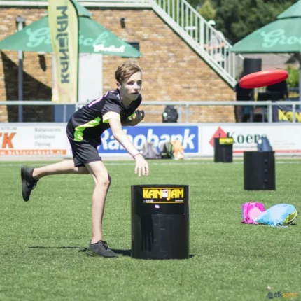 KanJam, é uma nova modalidade que não implica contacto físico. Utiliza um disco voador e dois cestos cilíndricos que servem de baliza ou alvo. Duas equipas de dois jogadores, jogam uns contra os outros, e o objetivo é lançar o disco e introduzi-lo na baliza que dista 15 m do lançador. O jogador lança o disco à baliza contrária, onde se encontra o seu companheiro que vai tentar desviar o disco para dentro da baliza caso este não vá bem direcionado e soma 1 ou dois pontos. Ganha a equipa que 1º chegar aos 21 pontos. No caso do lançador introduzir o disco diretamente na ranhura a sua equipa ganha a partida automaticamente. KanJam, é um jogo perfeito para discos voadores. É muito rápido, pode utilizar-se no interior e no exterior. Muito fácil de aprender, muito divertido. Fabricado a partir de materiais duradouros e de 1ª qualidade. É leve, fácil de instalar. Ideal para introduzir nas aulas de educação física.