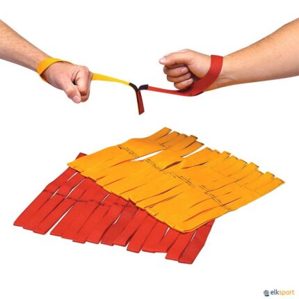 Conjunto de cintas desenhadas para ajudar os companheiros a manterem-se juntos durante os jogos de cooperação. Cada cinta é colocada no punho de um e outro jogador fixando-se com um velcro o qual não se deverá soltar se as tarefas foram corretamente executadas. Conjunto de 15 pares em 2 cores para facilitar o trabalho do professor na composição das equipas.