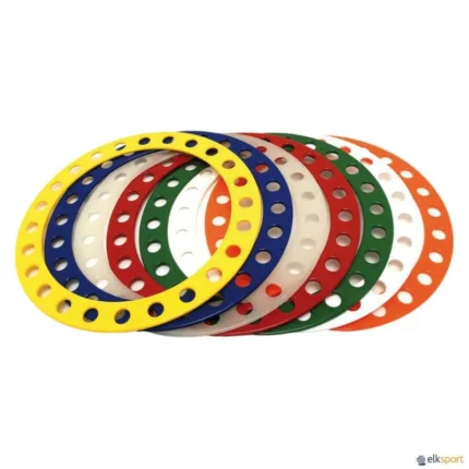 Anéis de malabarismo de plástico, com a borda rematada para maior segurança e conforto. Em 4 cores: amarelo, azul, vermelho e verde.