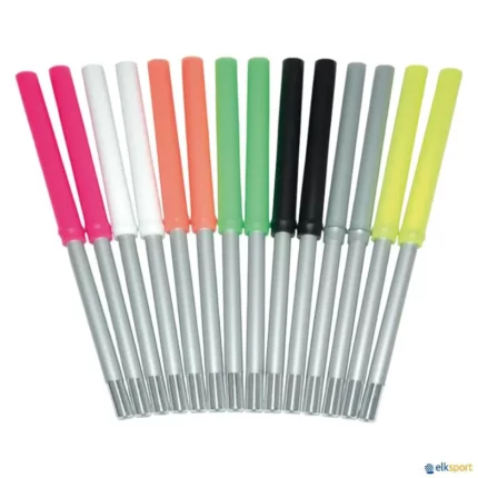 Preferidos por muitos profissionais, são fabricados com tubo de fibra de carbono, que confere flexibilidade, grande resistência e um peso mínimo. A extremidade é munida de uma peça giratória evitando que a corda se desfaça. Com pegas de espuma de alta densidade. Comprimento: 35 cm. Peso: 50 g.