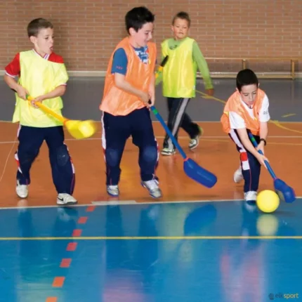 Jogo de Hóquei com a lâmina dos sticks em espuma forrada. O jogo de hóquei super suave (SS) é composto por: 10 sticks SS (5 amarelos +  5 azuis), 1 bola de espuma e 1 disco de espuma. Tamanho stick: 90 cm de comprimento. Bola: 14 cm de Ø. Existe ainda a possibilidade de adquirir sticks SS de reposição STICKS SUPER SUAVE :  assim como a bola J10061 BOLA DE MAZABALL. Para armazenar e transportar, recomendamos o nosso  SACO JUMBO.