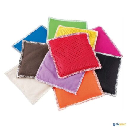 Fabricados em nylon com duplo revestimento e costura forte. Ideal para jogos de lançamentos, estafetas, malabarismo, jogos de precisão, etc. O conjunto é composto por: 6 saquitos em 6 cores (amarelo, azul, laranja, vermelho, verde e violeta). Dimensões: 10 x 10 cm. Peso: 119 g.