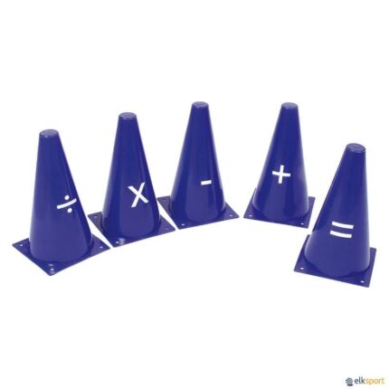 O conjunto de cones símbolos é composto por 5 cones com símbolos matemáticos impressos neles.
