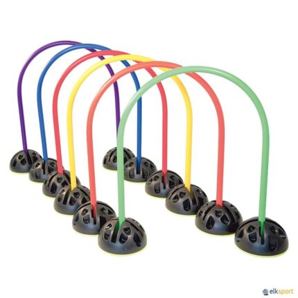 Jogo polivalente de arcos multiúsos — não vais parar de criar atividades com eles! Este conjunto de 6 arcos multiúsos pode ser utilizado para rastejar ou gatinhar, para lançar objetos ou bolas (com os pés ou com as mãos), com o objetivo de melhorar habilidades e destrezas básicas, como obstáculos para percursos de agilidade ou para criar novos jogos. Os arcos são fabricados em plástico muito resistente e duradouro, sendo estabilizados por bases de 390 g localizadas nas extremidades de cada arco.