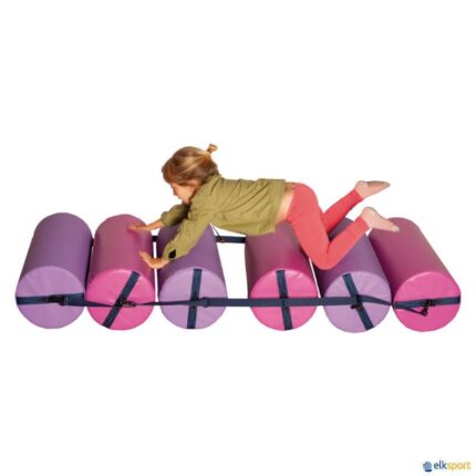 Conjunto de 6 cilindros de espuma forrada, unidos por fitas laterais com ganchos. As fitas podem ser retiradas, para utilizar os cilindros separadamente.