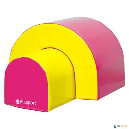 Túnel em espuma forrada, para jogos de psicomotricidade. Pode ser usada com outras formas geométricas e formar diferentes combinações.