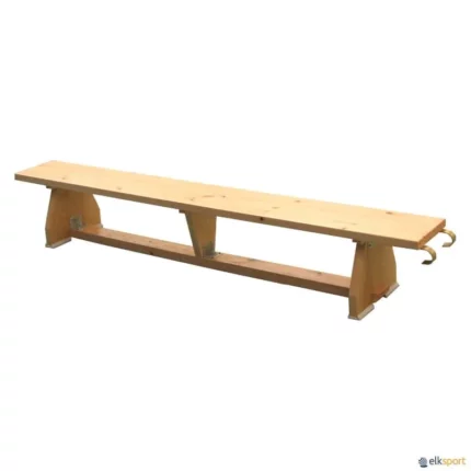 Banco sueco em madeira de pinho envernizada de primeira qualidade. Reforço metálico entre os pés e o assento. Podem ser engatados aos espaldares mediante ganchos metálicos ou tacos de madeira. Pés munidos de borracha antiderrapante.