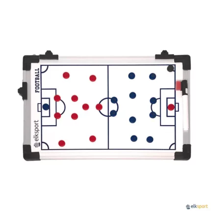 Quadro magnético rígido de parede de dupla face. Este quadro tático é perfeito para que os treinadores possam realizar explicações táticas à sua equipa. O quadro é de dupla face, com um campo completo de um lado e meio campo do outro. Pode ser utilizado tanto com fichas magnéticas como com marcador apagável. Inclui 2 suportes móveis para pendurar na parede horizontalmente e 1 suporte móvel para pendurar verticalmente.