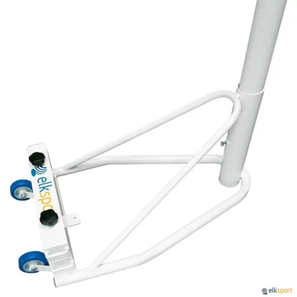 Par de postes com base e rodas, em tubo metálico de secção redonda ø 80 mm. Regulação da altura para vólei, badminton, tênis e pádel mediante mediante sistema deslizante e rosca. Guincho exterior zincado para tensão da rede. Base lastrada com contrapeso fixo de 10 kg e 2 contrapesos removíveis de 30 kg cada, peso total por poste 70 kg. Placa de metal perfurada incluída soldada à base, para fixação ao solo se necessário.
