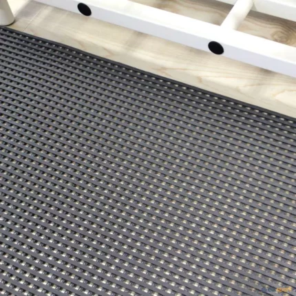 Fabricado em PVC virgem flexível e antiderrapante. Oferece a máxima estabilidade graças ao seu design com maior superfície de contato e peso. Rolo de 10 m de comprimento. Disponível em 2 larguras diferentes e 2 cores (azul ou cinza)