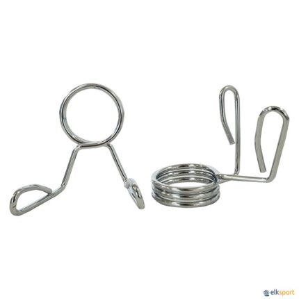 Par de molas Jaw para barras olímpicas, com sistema de segurança. Confortáveis de instalar e fabricados com materiais de alta qualidade, estes fechos proporcionam segurança nos treinos de fitness e são muito fáceis de colocar. Compatíveis com barras olímpicas de 50 mm de diâmetro.