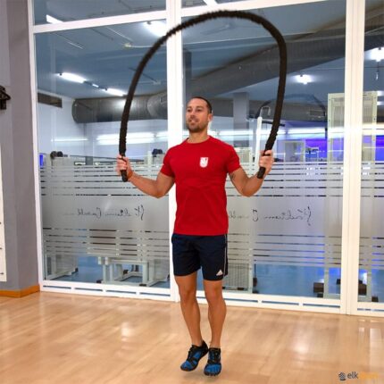 A corda funcional para saltar permite combinar o treino de força e o treino cardiovascular. Com esta corda, é possível realizar ambos os tipos de treino num só, uma vez que o seu comprimento e peso permitem saltar com ela. Fabricada com o mesmo material das cordas funcionais, possui uma fita protetora nas extremidades para evitar que se desfie e é revestida com uma capa protetora de nylon que a protege do desgaste e da abrasão.