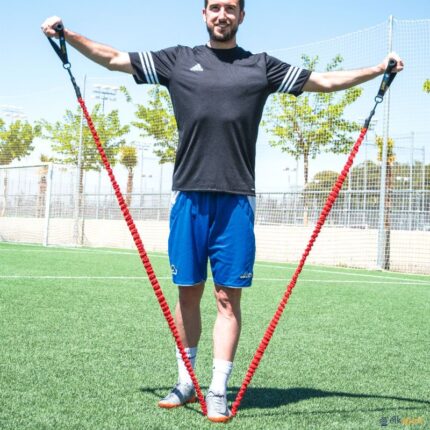 Os fitness tube ou tubos elásticos são um material ideal para realizar treinos de fitness. Elástico de resistência fabricado em borracha da melhor qualidade e com pegas de borracha natural, cujas empunhaduras permitem uma utilização confortável e evitam danos nas mãos. Muito útil para treino de força, reabilitação e treino funcional. · Comprimento: 120 cm · 4 Intensidades: ligeiro (amarelo) / médio (verde) / forte (vermelho) / extraforte (azul).