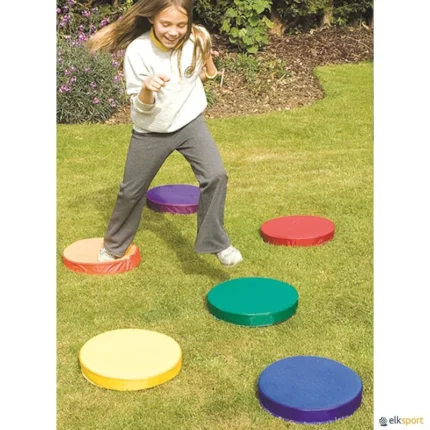 Estes discos sonoros são ideais para desenvolver o equilíbrio, lateralidade e sequenciação de habilidades etc… Conjunto de 6 discos coloridos, somente 1 deles imite som ao ser pisado, esta particularidade permite uma grande riqueza pedagógica na criação de exercícios. Podem se adicionar mais conjuntos para diversificar as atividades. Cobertura dos discos em nylon, com base antiderrapante para interior e exterior, lavável.