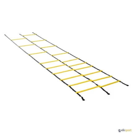 Escada de treino para treino de velocidade dos membros inferiores. Os espaços podem ser ajustados facilmente por deslize das barras e possibilidade de anexar outras escadas graças aos clips nas extremidades. Entregue com saco de transporte.
