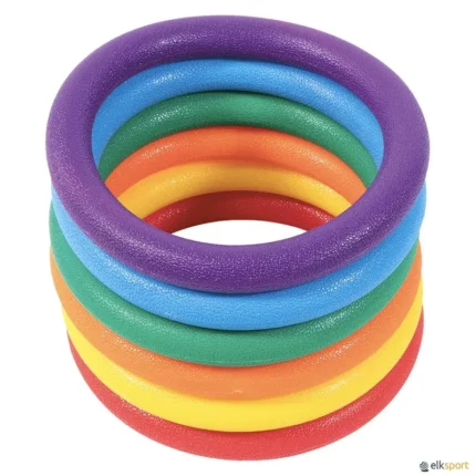 Anéis coloridos em espuma de célula fechada, recobrindo um tubo interior flexível de Ø 2,4 cm. Existe em 2 diâmetros : 65 e 90  cm de Ø.