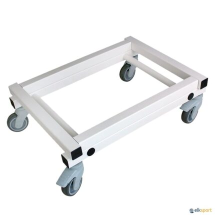 Base em tubo de PVC quadrado com 4 rodas (2 com travão). Resistente à humidade, gases e ácidos. Cestas não incluídas.