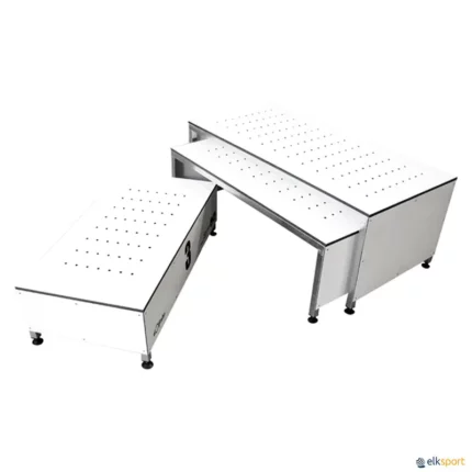 Ver também PÓDIO EMPILHÁVEL EM FIBRA DE VIDRO ou PÓDIO EMPILHÁVEL METÁLICO.