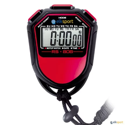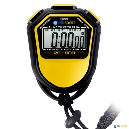 Cronómetro desportivo multifuncional com ecrã LCD e uma linha de grande visibilidade. Com  pilha alcalina incluída. Precisão de 1/100 segundos. 2 Memórias: tempo simples e tempo acumulado. Alarme. Calendário. 2 Cores: amarelo ou vermelho. Também vendido em mala com 10, 16 ou 24 cronómetros. A mala também pode ser vendida vazia. Dispomos de outros cronómetros: 30 MEMÓRIAS / 60 MEMÓRIAS / 100 MEMÓRIAS