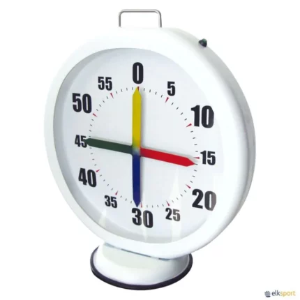 Fabricado com proteção frontal. Funciona com pilhas. Portátil. Agulhas em cruz de 4 cores diferentes. Dimensões: 57 x 50 x 9/25 cm. Existe em modelo fixo, elétrico CRONÓMETRO 4 PONTEIROS.