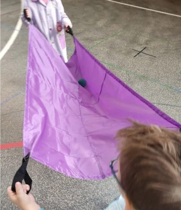 Quando você recebe um novo material para usar nas suas aulas de Educação Física, sua cabeça começa a criar. A primeira coisa que você pretende é poder encaixar esse material nas suas sessões, que ele se adapte aos seus alunos e que seja um dos meios para conseguir desenvolver os aprendizados que você propôs. É por isso que nós, professores de Educação Física, procuramos um material que seja o mais versátil possível, que possa ser usado para várias opções. E os pára-quedas cooperativos, ou pára-quedas em pares, são um desses materiais versáteis.