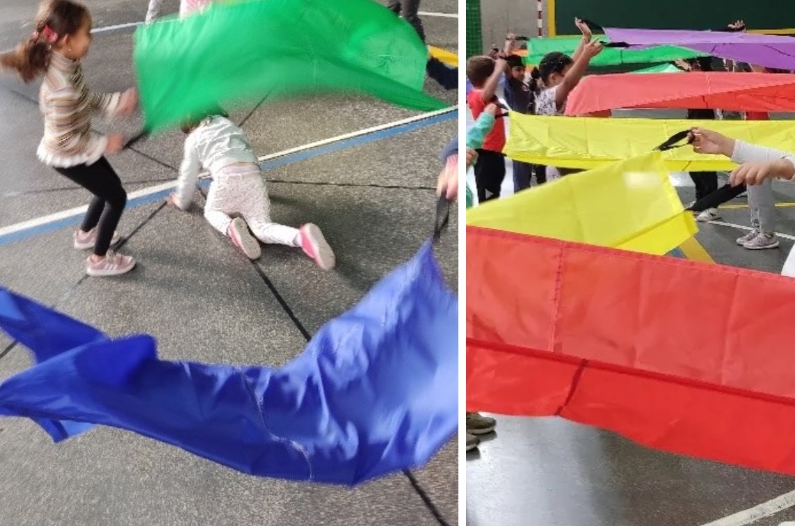 Quando recebi os pára-quedas infantis para jogos cooperativos, pensei que não conseguiria tirar muito proveito deles, mas para minha surpresa, eles se tornaram uma proposta divertida, dinâmica, altamente motivadora e, acima de tudo, que me permitiu desenvolver conteúdos muito diversos. Hoje vamos fazer um pequeno percurso por cursos de duas etapas educativas. Desde os mais pequenos da infância até aos alunos do 6.º ano do ensino básico, todos utilizaram estes pára-quedas infantis com resultados muito surpreendentes. Espero que estas propostas de jogos cooperativos com pára-quedas para crianças possam ser úteis. Começa a viagem...