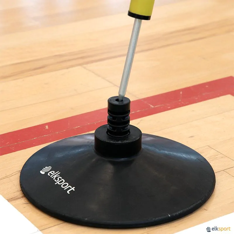 Lote 12 adaptadores que permitem utilizar os bastões com pontas de aço onde não se possam espetar (relva sintética, pavilhões ou em interiores de recintos. Só tens de introduzir o adaptador numa base e colocar o bastão).