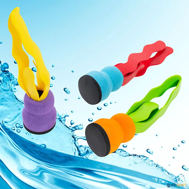 Treine as habilidades de mergulho com este atraente e divertido jogo de algas. Fabricadas em borracha, a sua base com lastro faz com que se mantenham retas no fundo da piscina. As crianças podem facilmente alcançar as algas e levá-las à superfície.