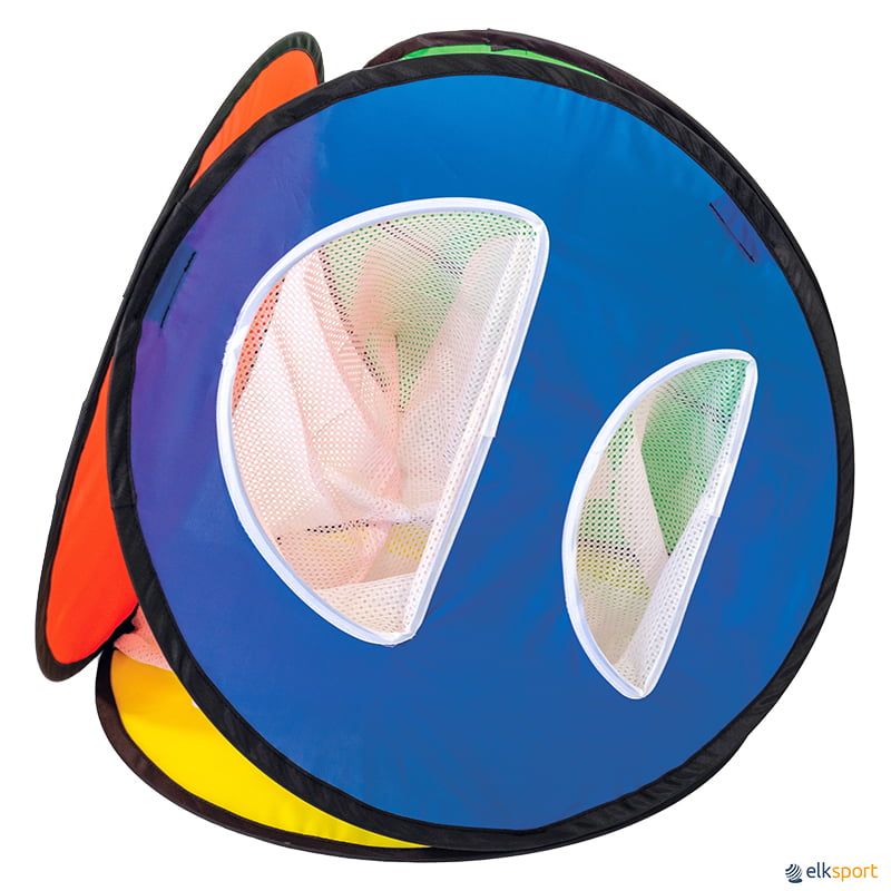Alvos para lançamentos fabricados em fibra de vidro, tecido de poliéster e rede de poliéster. Uma vez abertos, os alvos formam 3 lados, cada um com um nível de dificuldade diferente. Ideais para trabalhar várias habilidades de precisão nos lançamentos, com saquinhos, bolas, bolas de golfe, etc. Com design pop-up, abrem-se e fecham-se em segundos, sendo muito fáceis de arrumar e prontos a usar rapidamente. Adequados tanto para utilização no interior como no exterior. Incluem espia para fixação na relva ou terra, e saco para arrumação e transporte.· Conjunto composto por: 4 alvos numerados em 4 cores (amarelo, azul, vermelho e verde)
