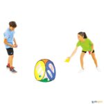 Cada uma das suas quatro faces permite um jogo e um desafio diferente. O alvo pop-up 4 em 1 para jogar golf, e lançar pequenos objetos como saquitos, bolas ou bolas de golf. Fabricado em fibra de vidro, tecido de poliéster e rede de poliéster. Uma vez desdobrado, aparecem 4 alvos com 4 objetivos diferentes em cada lado Perfeito para trabalhar as diferentes capacidades de precisão, de lançamento e para ajudar os jogadores de golf a melhorar. Design pop up, o que significa que se desdobra e dobra em segundos. Adequado para utilização no interior e no exterior. Inclui espias para fixação ao solo e um saco para arrumação e transporte.
