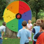Uma face inclui 6 setores em 6 cores e 2 círculos centrais destacáveis. A outra face simula um ‘green’ de golfe com bunkers, água e buraco central destacável. Com alças de nylon para pendurar, pode ser utilizado na horizontal, elevado ou na vertical. A sua superfície de velcro permite a aderência de diferentes objetos. Alvo fabricado a 100% em poliéster. Inclui saco para armazenamento e transporte. Idade recomendada: +3 anos, utilizar sob supervisão de um adulto