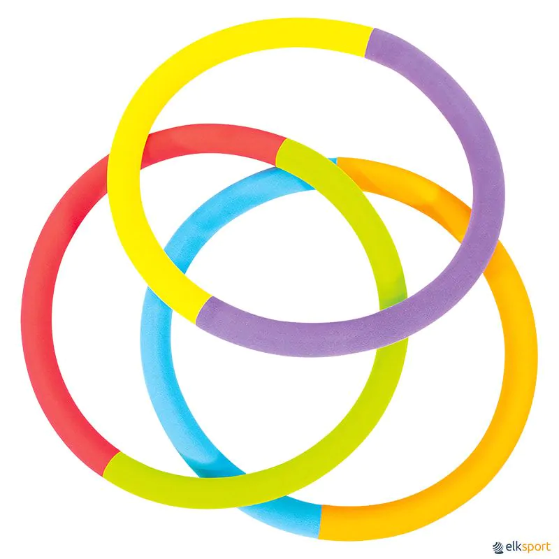 O conjunto é formado por: 3 aros de espuma bicolores.